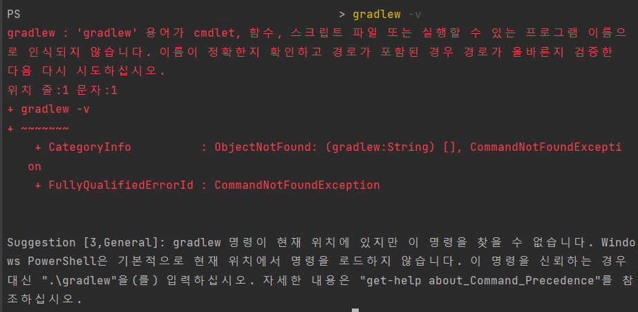 Suggestion [3,General]: gradlew 명령이 현재 위치에 있지만 이 명령을 찾을 수 없습니다. Windo