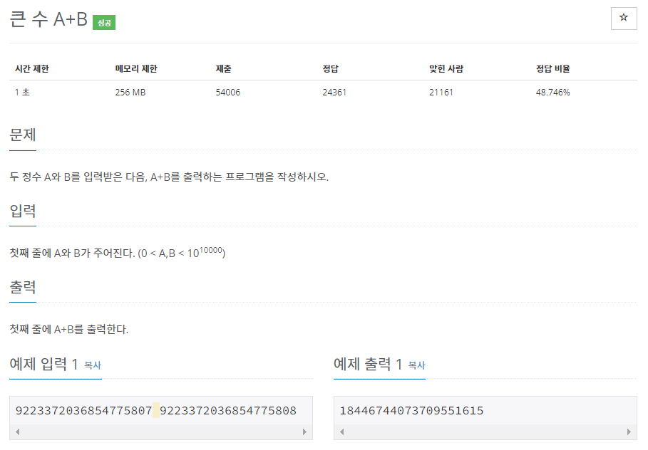 - 문제 내의 주어진 범위 : 1010000 ➡ long 타입 범위 초과