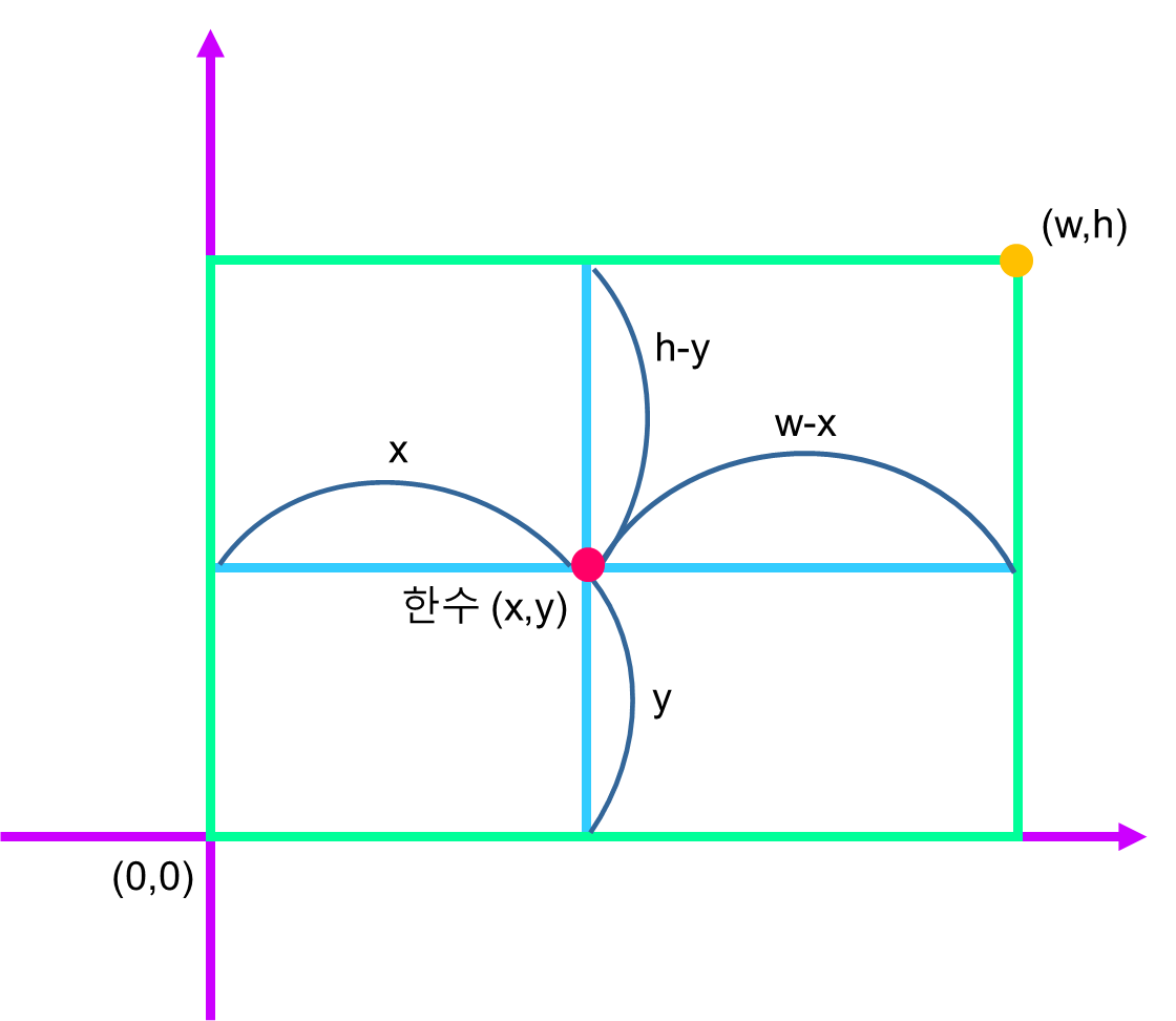 int y_min = Math.min(y, h-y); //y축 최소 거리
