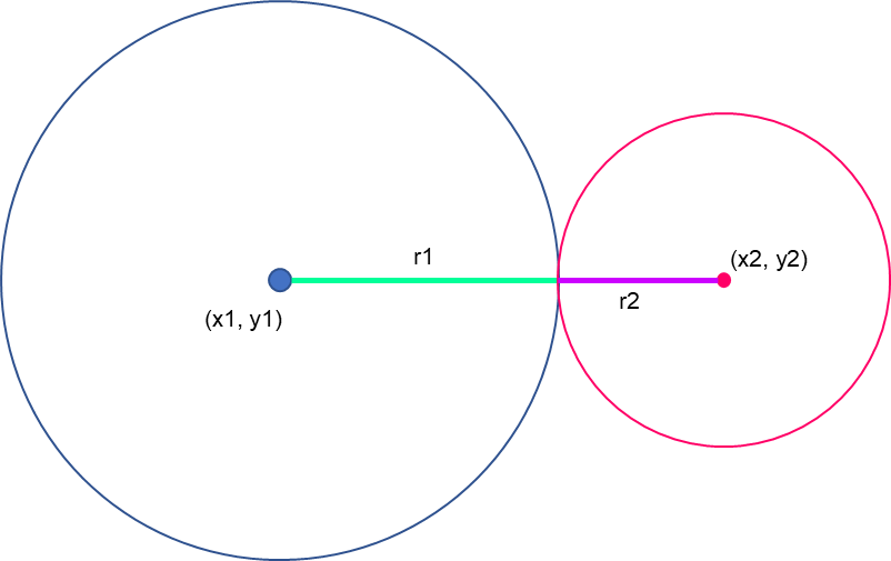 - 두 좌표간의 거리가 두 반지름의 합과 같으면 외접