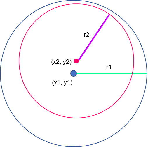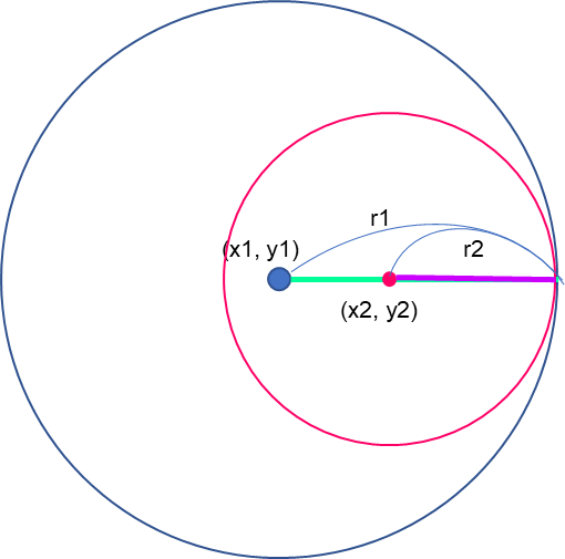 //case 2-2: 원 안에 원이 있으나 내접하지 않을 때