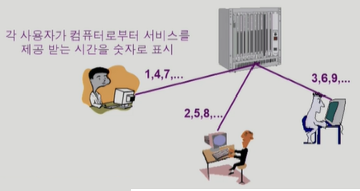 Time sharing 여러 작업 수행 시 컴퓨터 처리 능력을 일정한 시간 단위로 분할해 사용 일괄 처리 시스템에 비해 응답시간 짧음 Interactive ![]() |