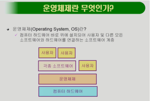 - 컴퓨터 하드웨어 바로 위에 설치됨