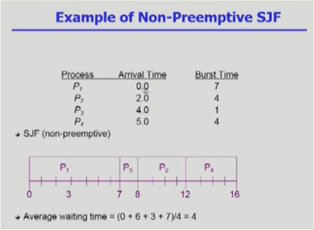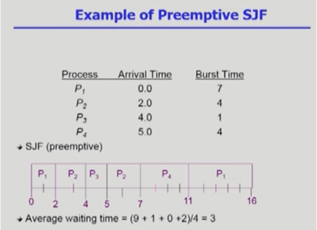 - 주어진 프로세스들에 대해 minimm average waiting time 을 보장