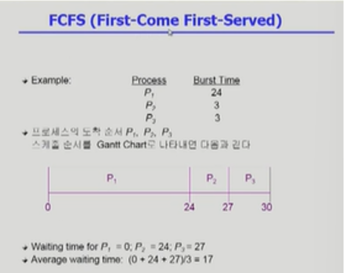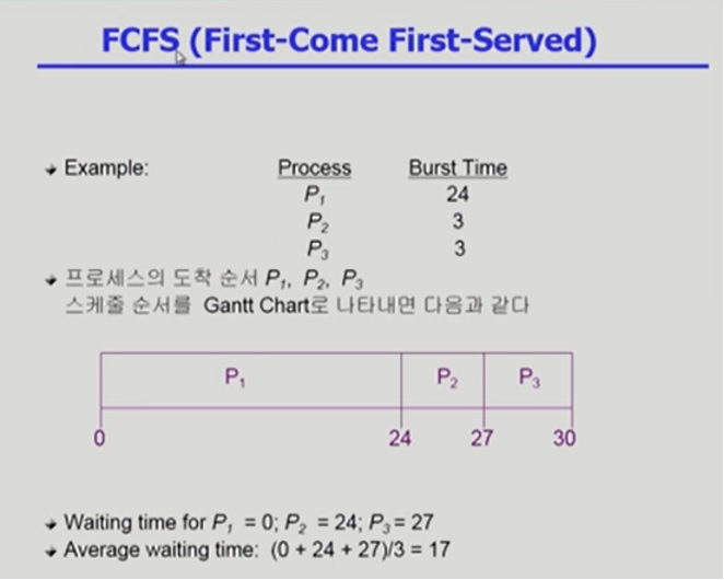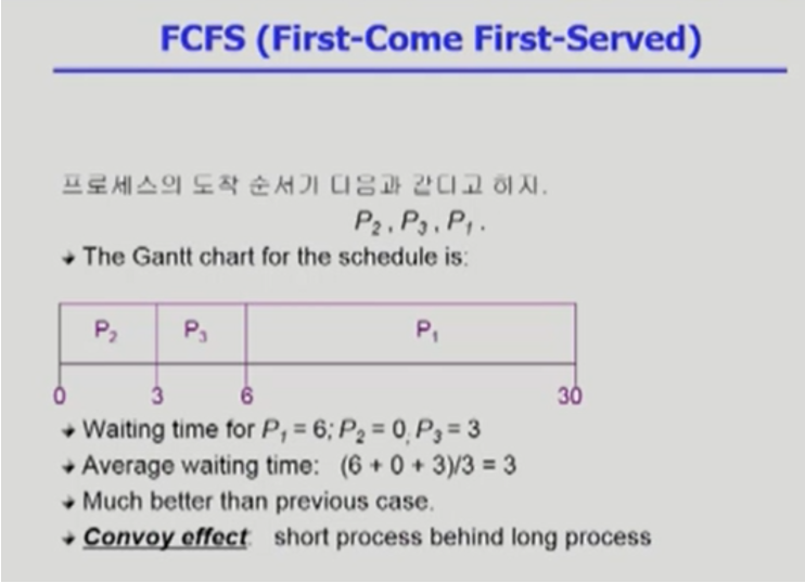 - Convoy effect = 짧은 프로세스들이 CPU 점유할 때까지 오래 기다려야 하는 현상