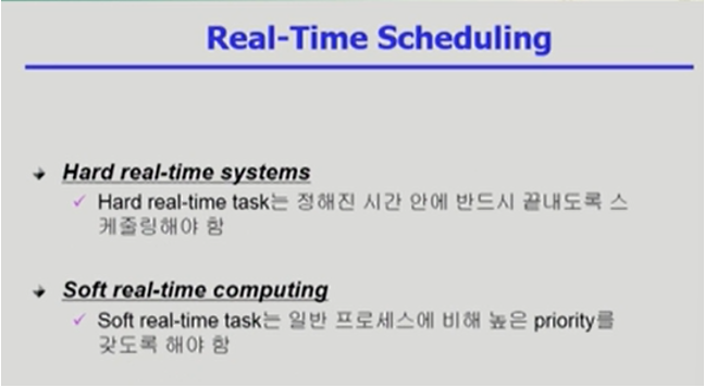 - 프로세스가 커널 모드에 있을 땐 할당시간이 끝나도 CPU를 뺏기지 않게 해야
