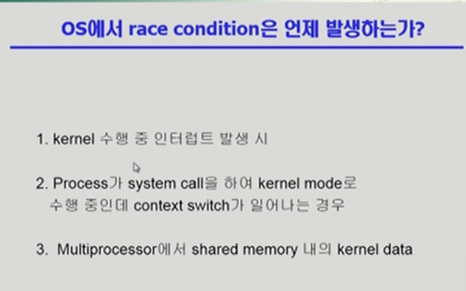 OS에서 race condition은 언제 발생하는가?