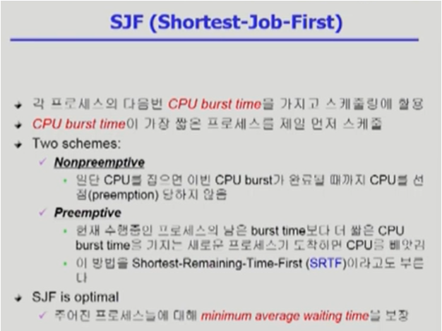 - SJF 는 일종의 priority scheduling