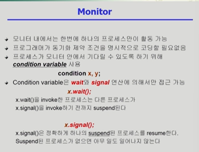 - 모니터는 모니터에 대한 동시 접근을 허락하지 않음
