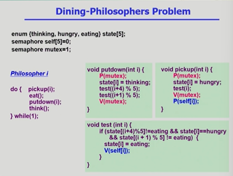 - v(self[i]) : 주변 철학자가 밥 안 먹고, 내가 배가 고프면, 내가 젓가락을 잡을 권한을 얻는 연산