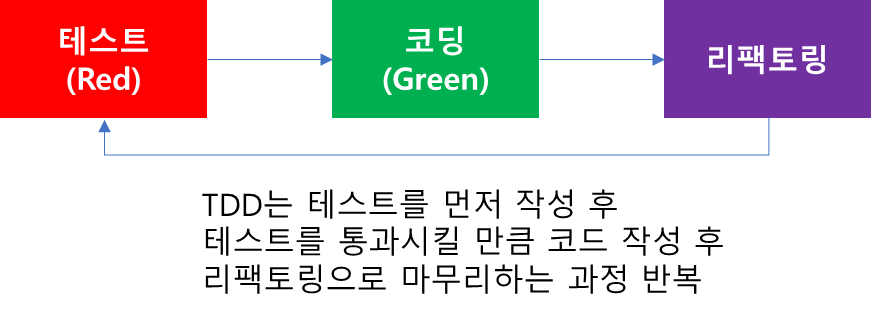 - 그린 = 성공한 테스트 = 코드 구현해 실패 테스트를 통과시킴