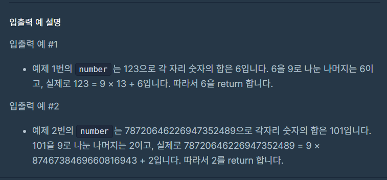 return number.chars().map(ch -> (ch - '0') % 9).sum() % 9;