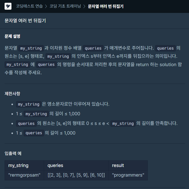 public String solution(String my_string, int[][] queries) {
