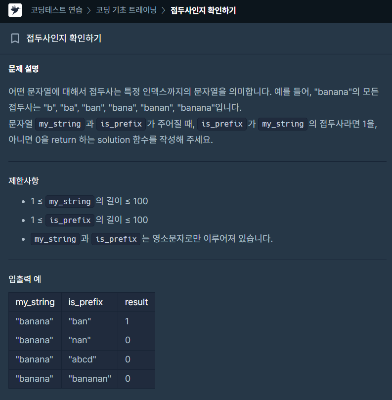 | [Programmers] Lv.0 / 접미사인지 확인하기 / Java (0) | 2023.11.28 |