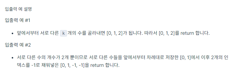 // 먼저 arr에서 얻은 서로 다른 값들이 나열되고,