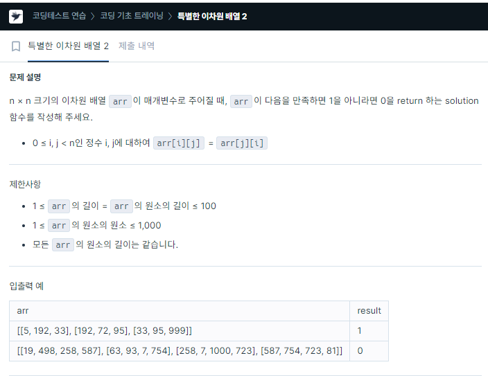 | [Programmers] Lv.0 / 특별한 이차원 배열 1 / Java (0) | 2024.03.13 |