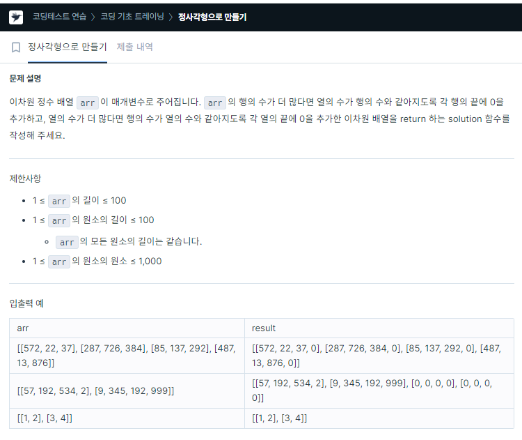 | [Programmers] Lv.0 / 특별한 이차원 배열 1 / Java (0) | 2024.03.13 |