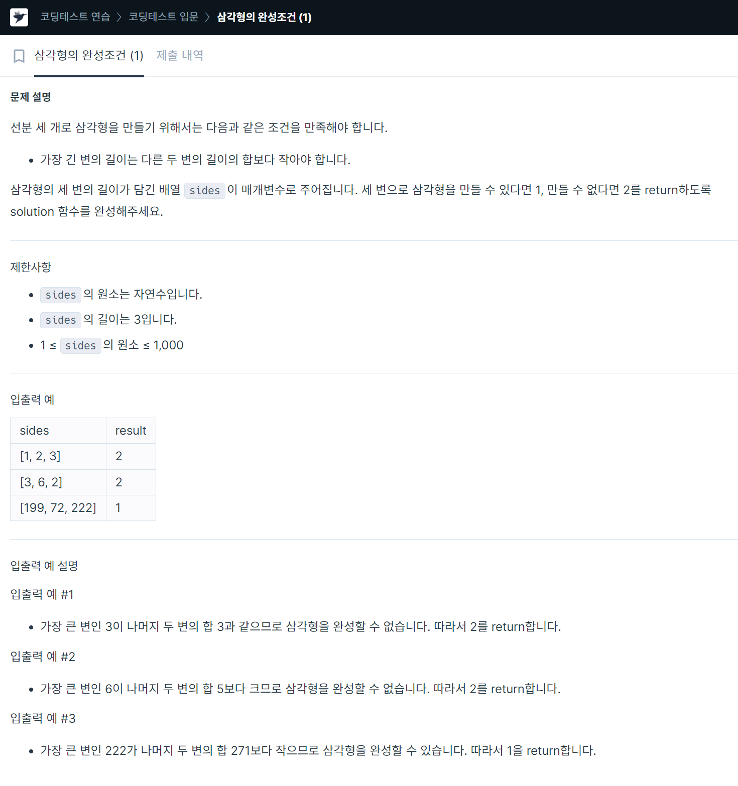 public int solution(int[] sides) {