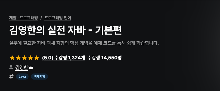 김영한 | , 국내 개발 분야 누적 수강생 1위, 제대로 만든 김영한의 실전 자바[사진][임베딩 영상]단순히 자바 문법을 안다? 이걸로는 안됩니다!전 우아한형제들 기술이사, 누적 수강생 40만 명 돌