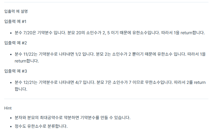 - 이때 a / b를 소수로 만들 때, 단순히 a와 b의 최대공약수를 구한 후, b가 2와 5만으로 나누어지는지 확인하는 방식이 아닌, 1000배를 해서 확인하는 방법을 사용한 것