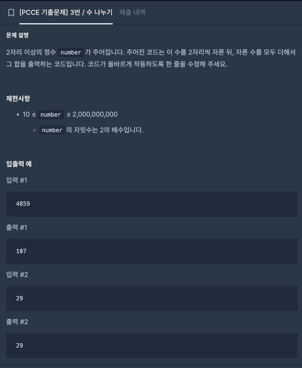 | [Programmers] Lv.0 | [PCCE 기출문제] 6번 / 물 부족 | Java (0) | 2025.09.22 |