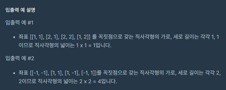 // 가로 길이 = x 좌표의 최댓값 - 최솟값