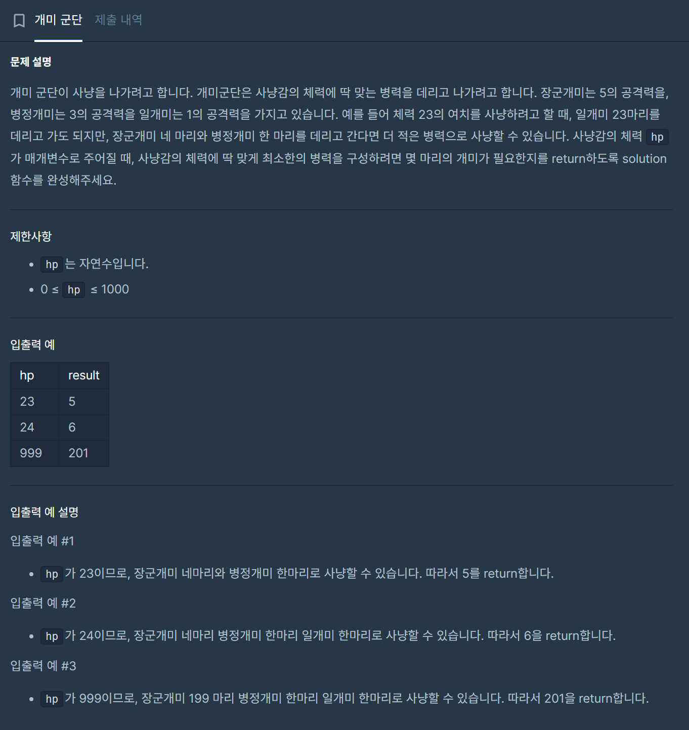 int generals = hp / 5; // 장군개미 수
