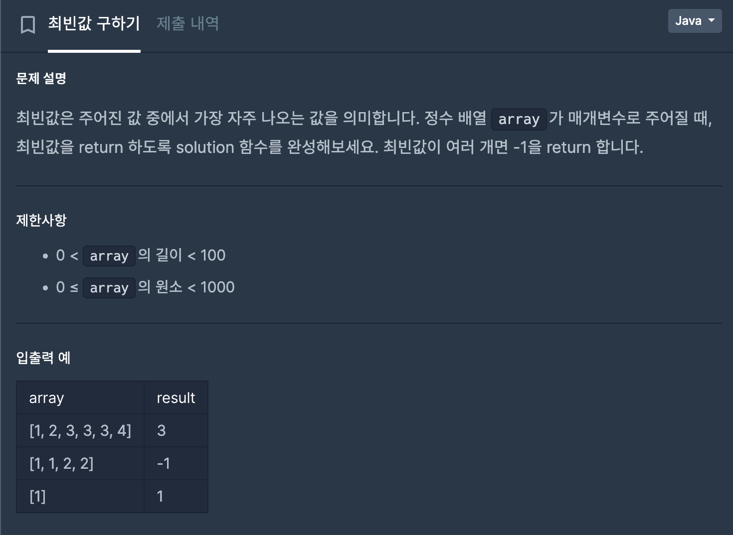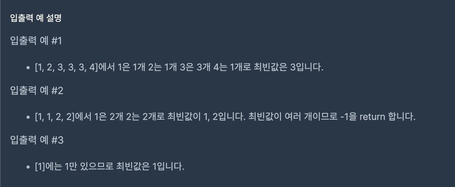 여러 개면 -1 return - 최빈값이 여러 개 나오는 순간 바로 return -1로 빠르게 종료