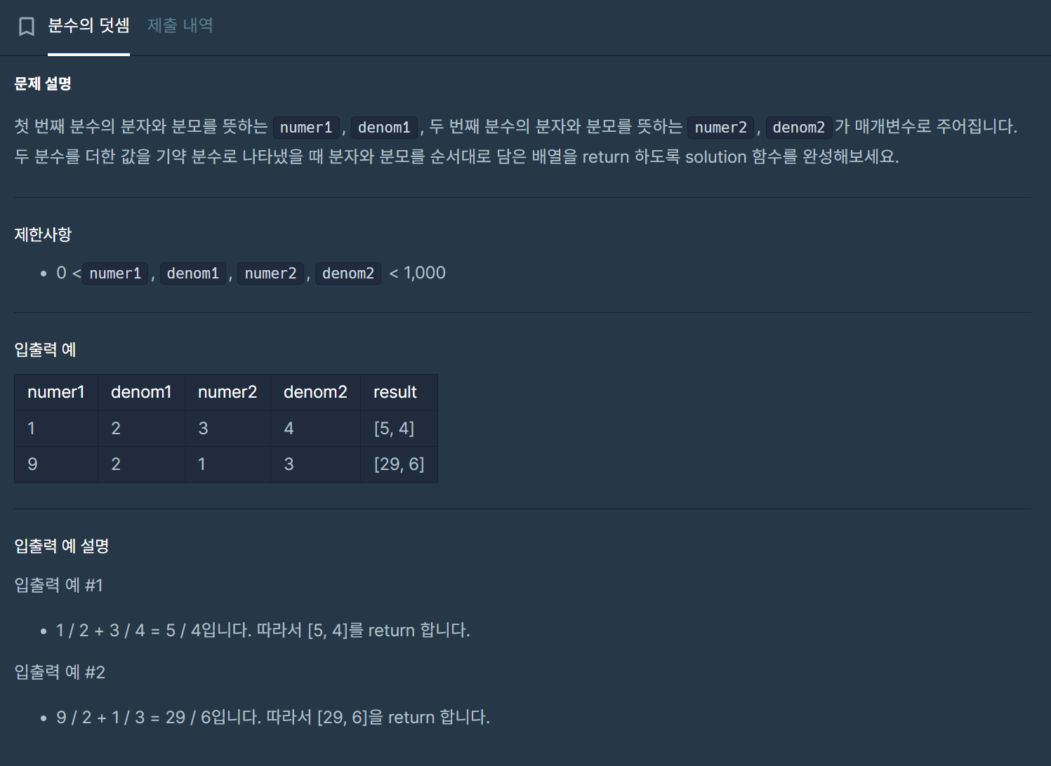 int numerator = numer1 * denom2 + numer2 * denom1; // 분자 계산