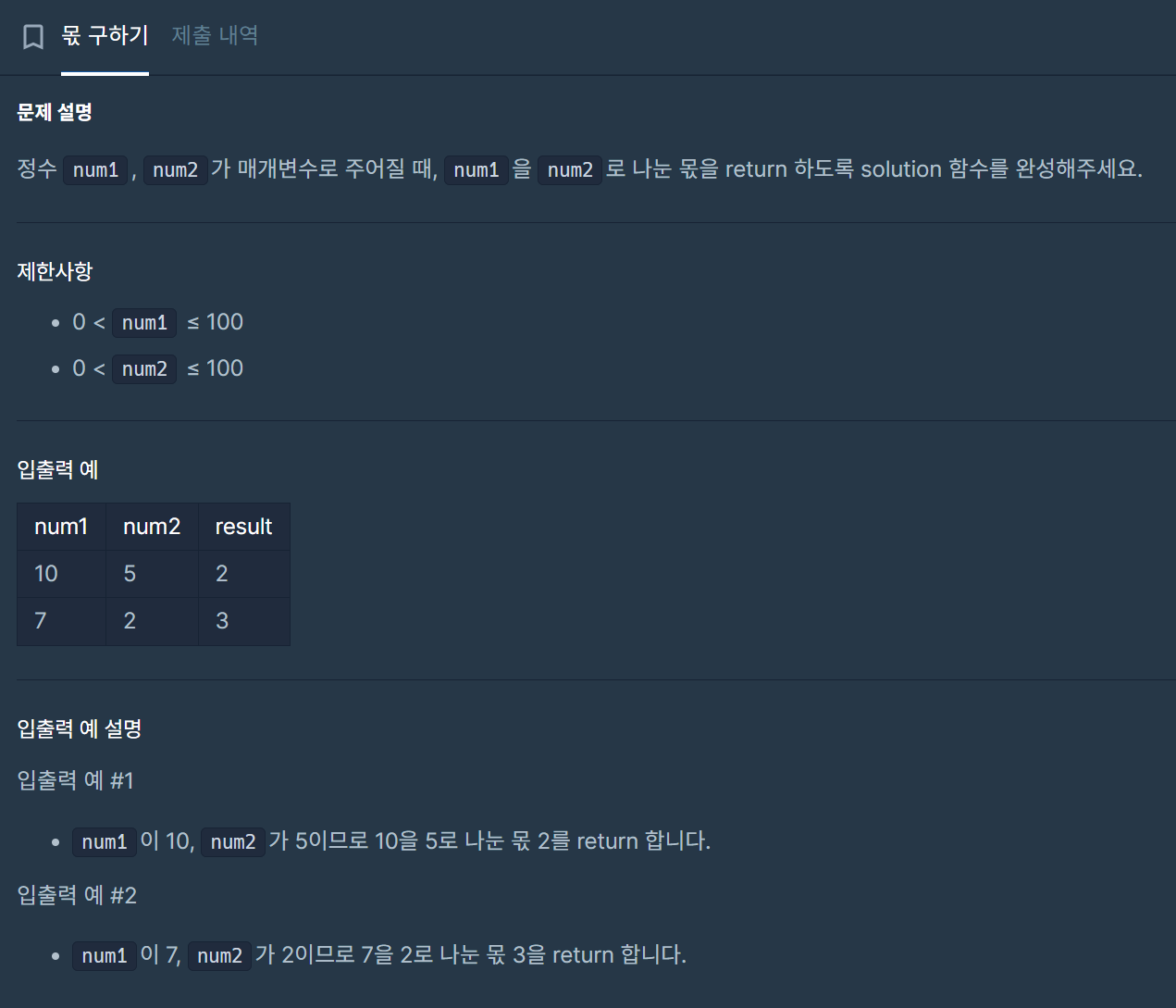 | [Programmers] Lv.0 | 두 수의 나눗셈 | Java (0) | 2025.11.05 |